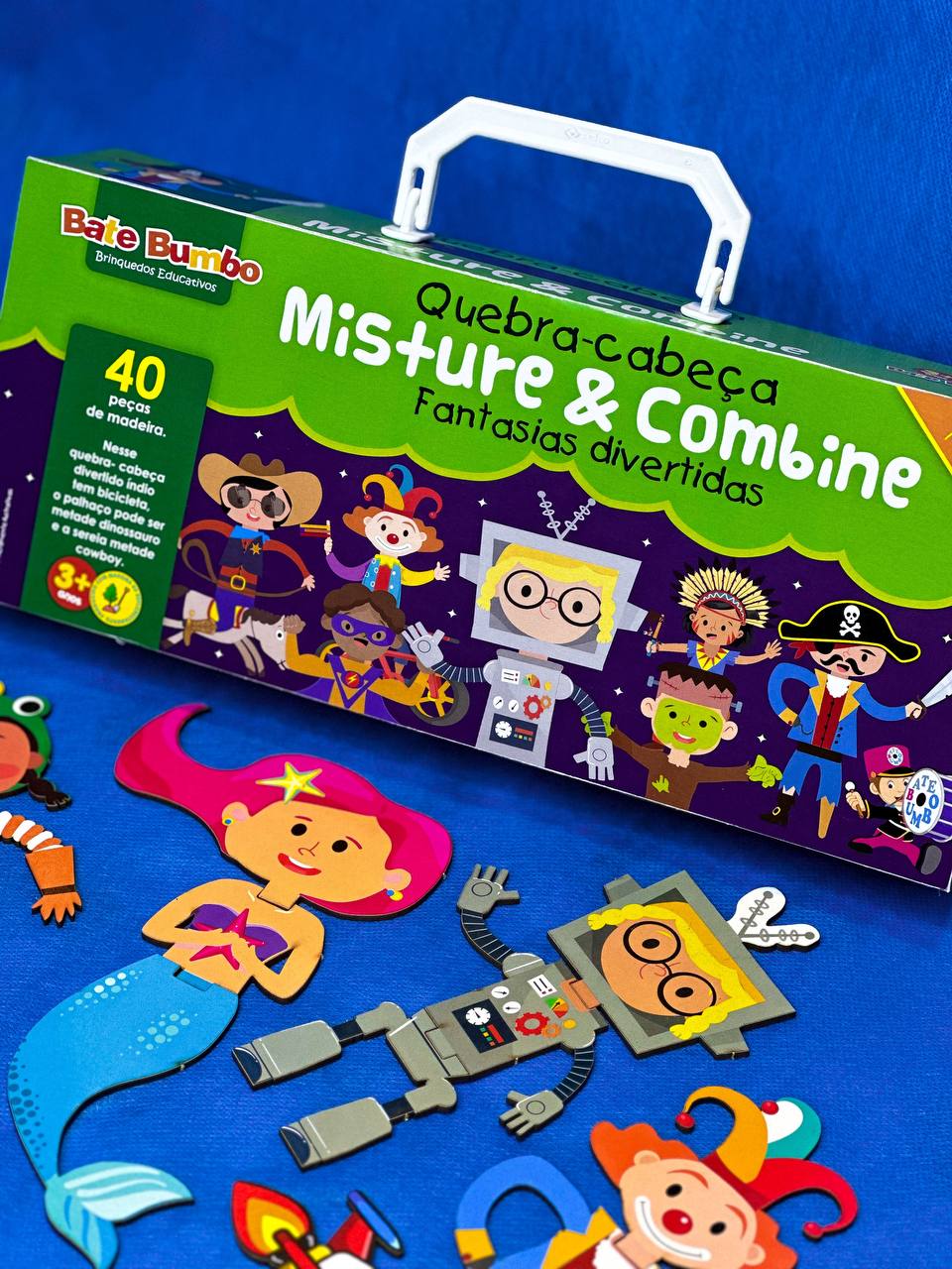 Nesse quebra-cabeça divertido índio tem bicicleta, o palhaço pode ser metade dinossauro e a sereia metade cowboy .Os fãs de quebra-cabeças podem inventar e descobrir suas próprias fantasias imaginárias #batebumbobrinquedos